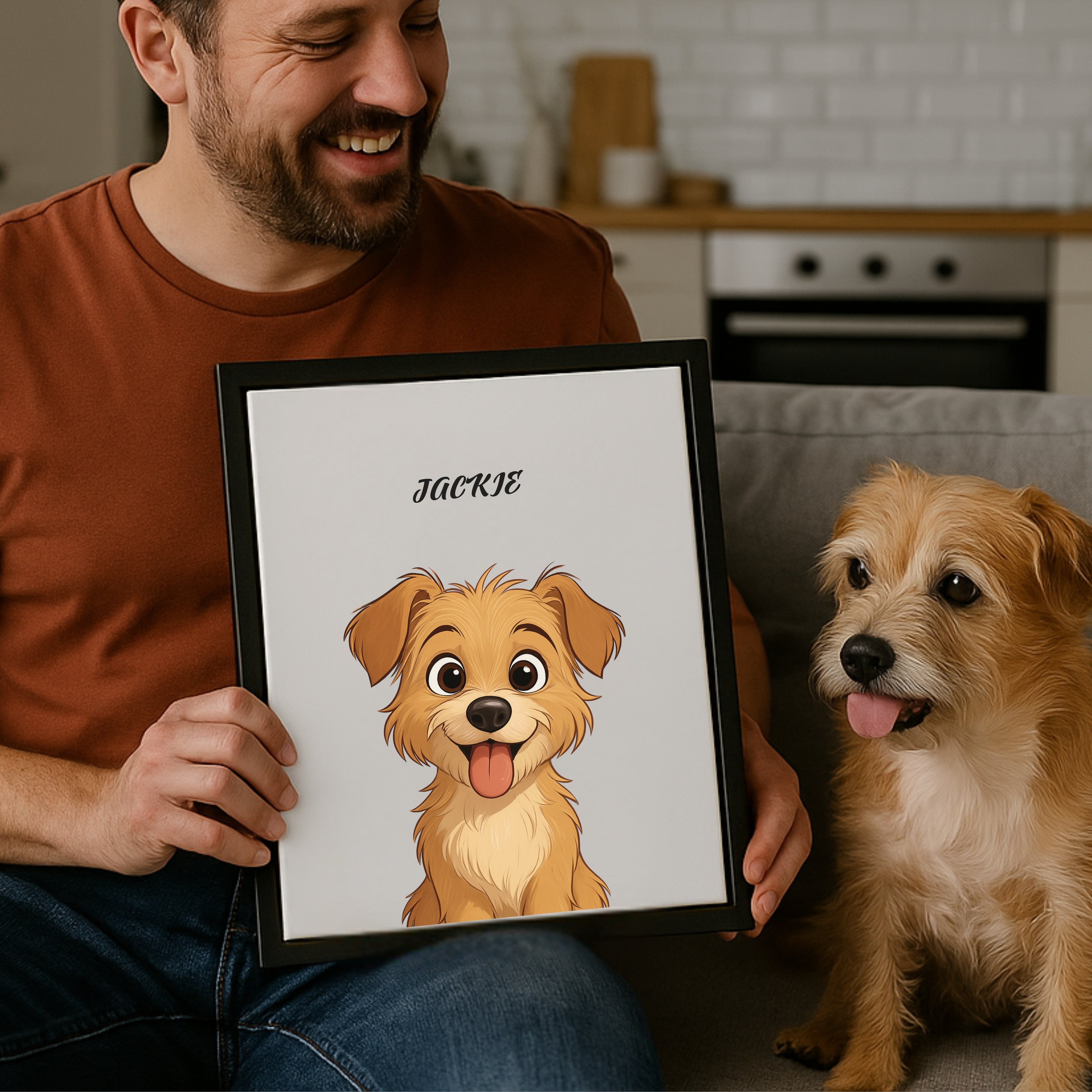 Our jackie girl is getting up there in age. We wanted to commemorate her and had her younger years printed. This cartoon portrait is adorable. We love it.